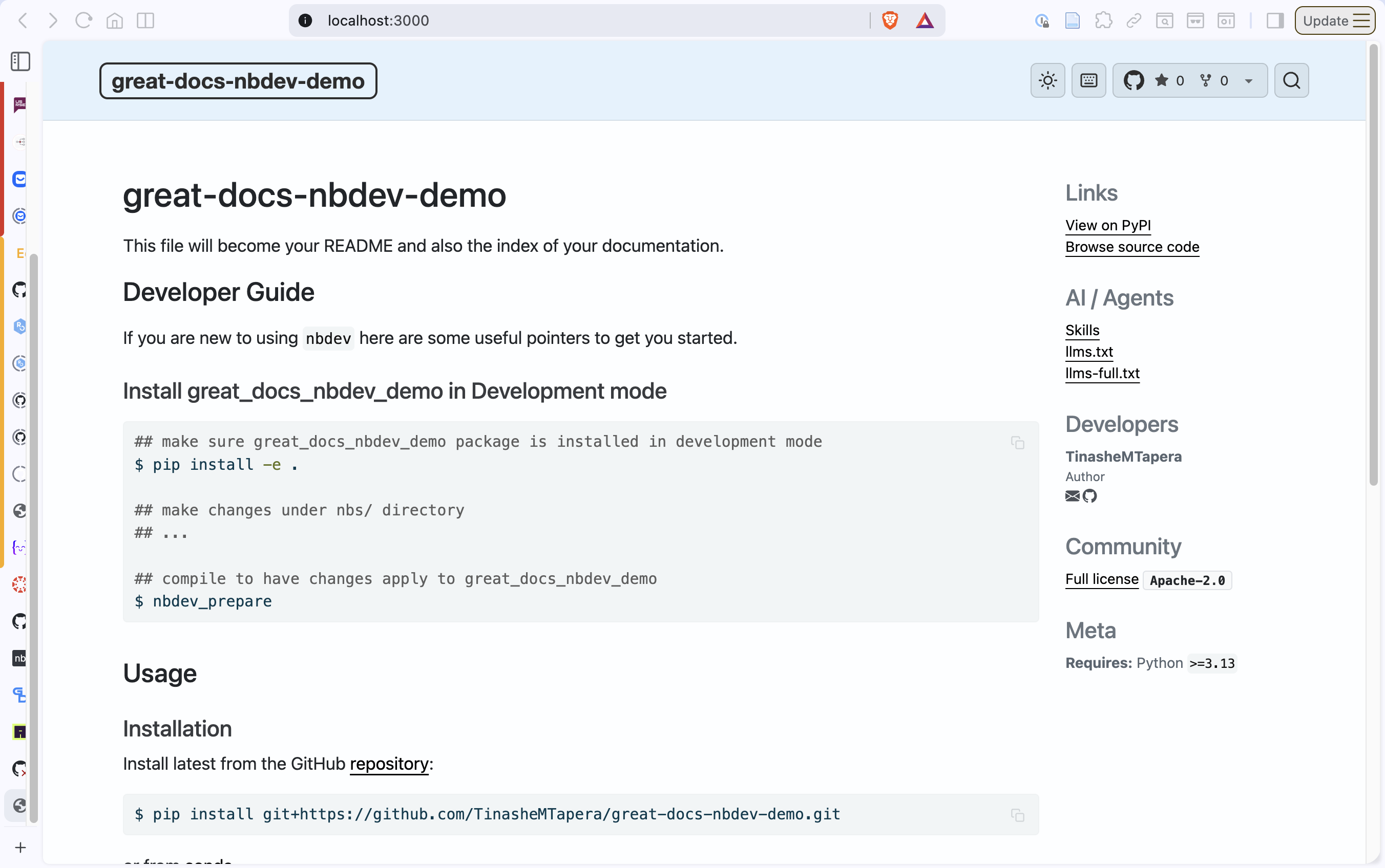 In a nutshell, great-docs is a Python package documentation site generator that: